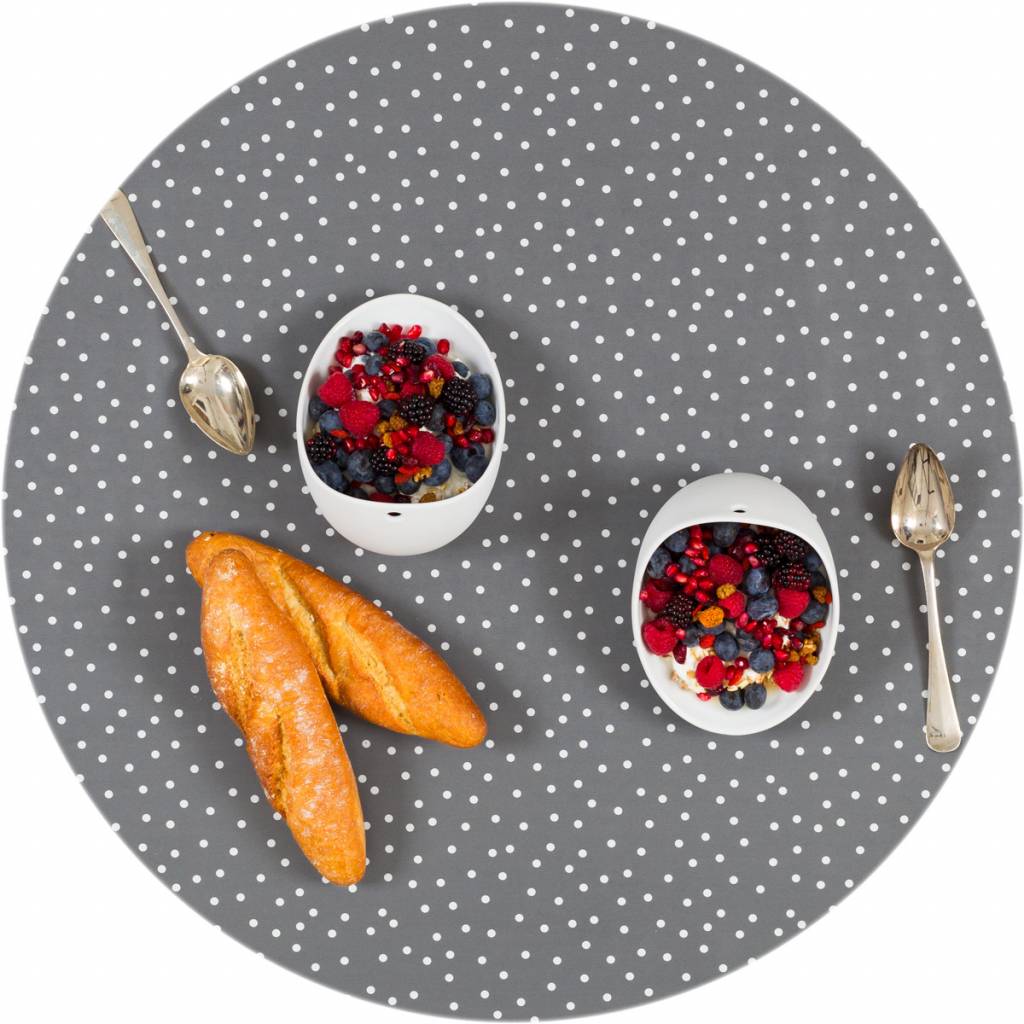 Rond Tafelzeil Grijs met witte stippen goedkoop kopen?